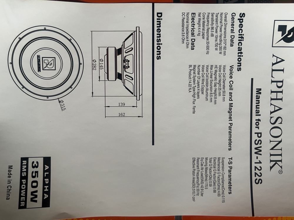 ساب ووفر با بیس فوق العاده نرم و کاملا تنظیم با اهنگ دارای 700w مکث و350rms 4اهم قابلیت راه اندازی بدون نیاز به امپ مونو